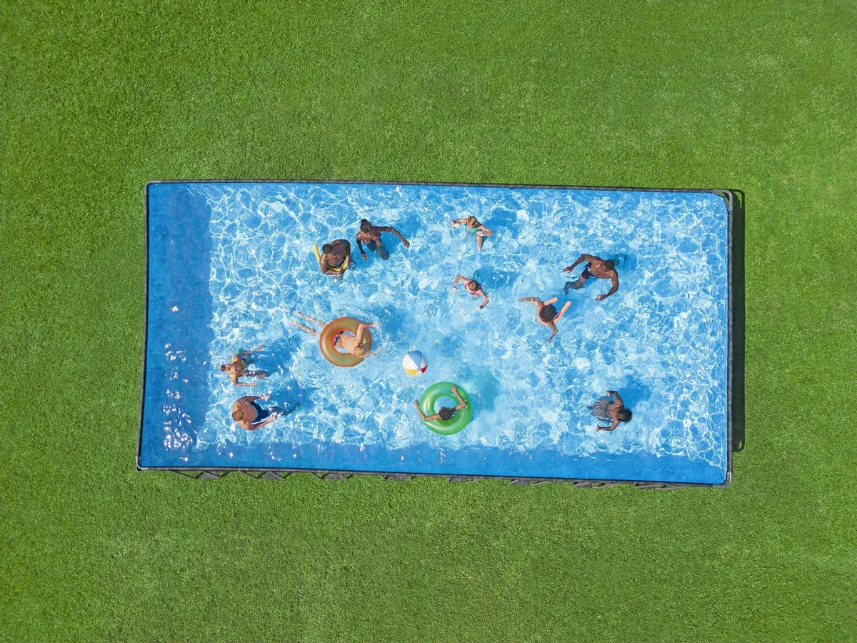 Geniet van ultiem zwemplezier in je eigen tuin met het Bestway APX 365 zwembad. Dit luxe en extra grote opzetzwembad heeft een indrukwekkend formaat van 956 x 488 x 132 cm en biedt ruimte aan wel 12 personen. Perfect voor zomerse dagen met familie of vrienden. Dankzij het robuuste stalen frame, de stevige liner van versterkt PVC en het slimme Click & Connect System staat dit zwembad garant voor stabiliteit en langdurig gebruik.