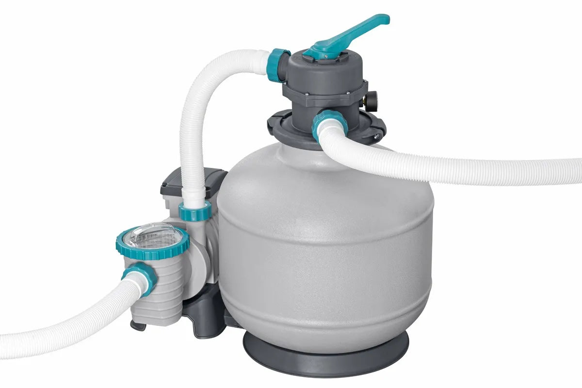 Het moderne donkergrijze design maakt dit zwembad een stijlvolle blikvanger in elke tuin. De meegeleverde Bestway Flowclear zandfilterpomp (8,3 m³/u) zorgt samen met de bijgeleverde filterbollen voor kristalhelder water. Ook inbegrepen zijn een zwembadtrap en een afdekzeil – alles wat je nodig hebt voor een complete en zorgeloze zwembeleving.