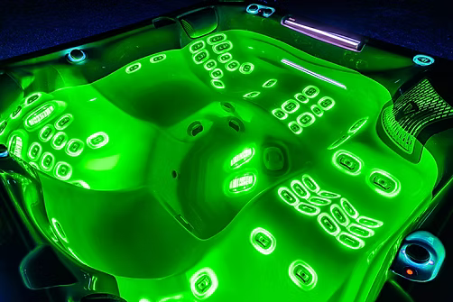 Verlichtingsopties in de jets, waterval, hoeken en centraal – voor ultieme sfeer ’s avonds. Verander de kleur naar wens en creëer een rustgevende ambiance.